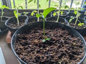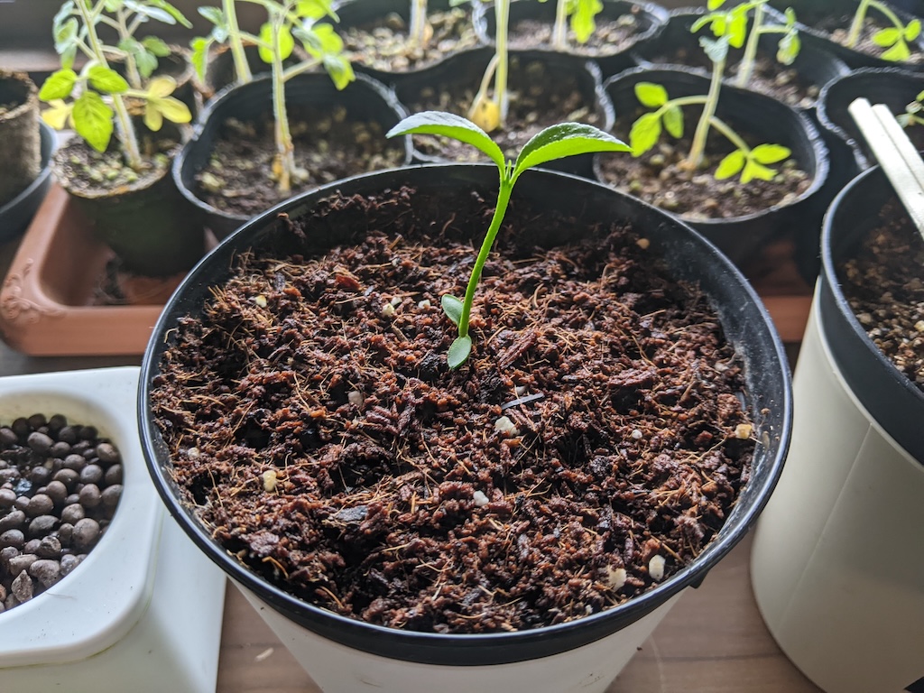 双葉から葉っぱが育ち始めた